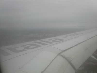 | Auf dem Rückflug von Italien nach Deutschland: herrliche Sicht über die schneebedeckten Alpen. | Eine Stunde später: Landung bei etwas schlechterem Wetter. | ||||||||||||||||||||||||||||||||||||||||||||||||||||||||||||||||||||||||||||||||||||||||||||||